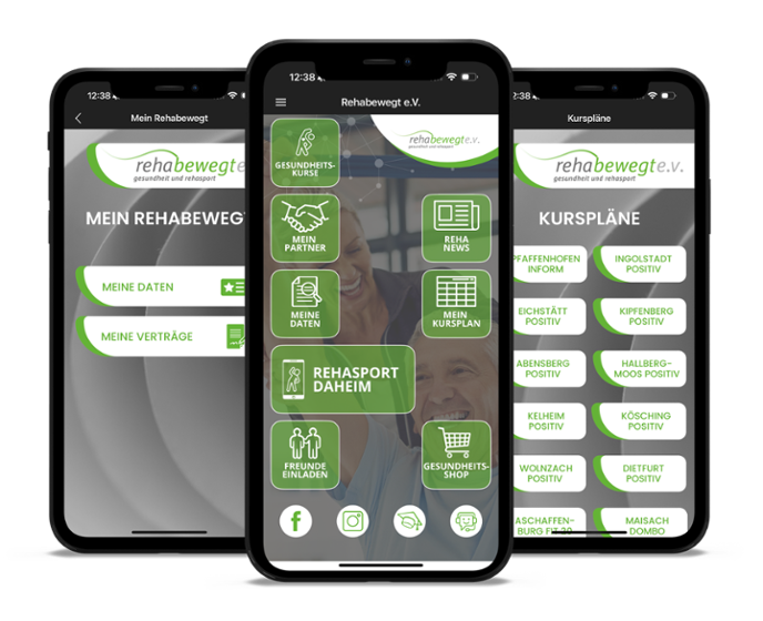 Dein Rehabewegt-Studio immer in der Hosentasche mit aktuellem Kursplan, Specials, brandaktuelle News, attraktive Angebote, Studio-Infos und vieles mehr...Für Apple und Android, kostenloser Download: